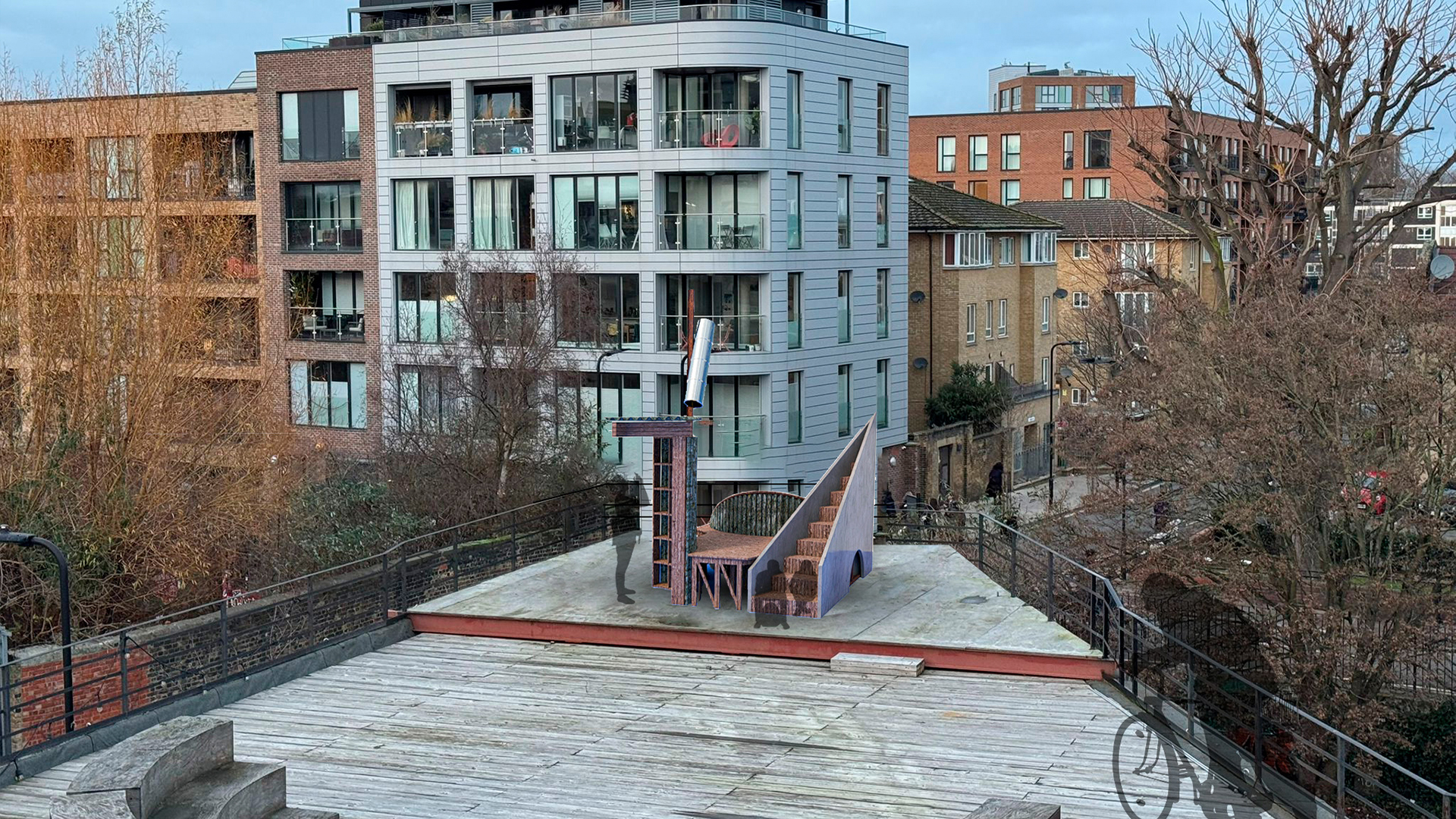 1. The Observation Deck: A raised platform with a staircase and a bleacher, offering a new perspective on the site.