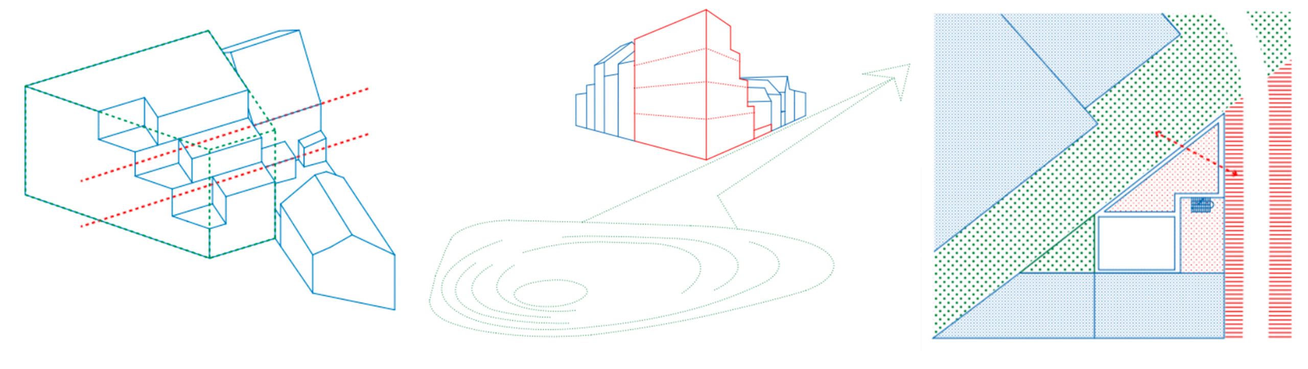 In this context, the new corner building introduces public housing and shared facilities, supporting the return of residents and the improvement of their living environment. Positioned as a hinge at the entrance of the district, the project engages directly with the future Sennette Park and the network of new pedestrian connections, creating a strong link between street, housing, and public space.