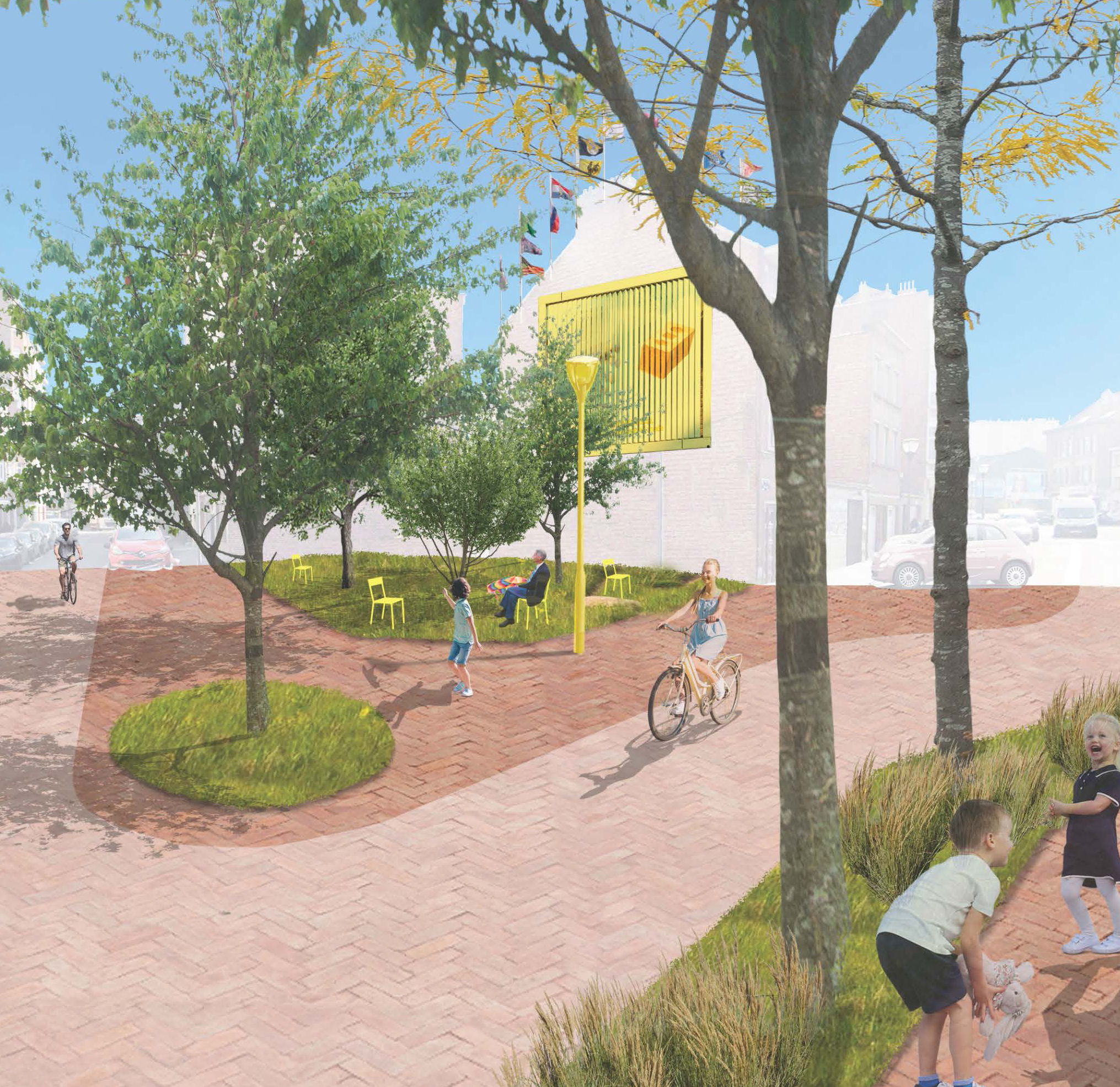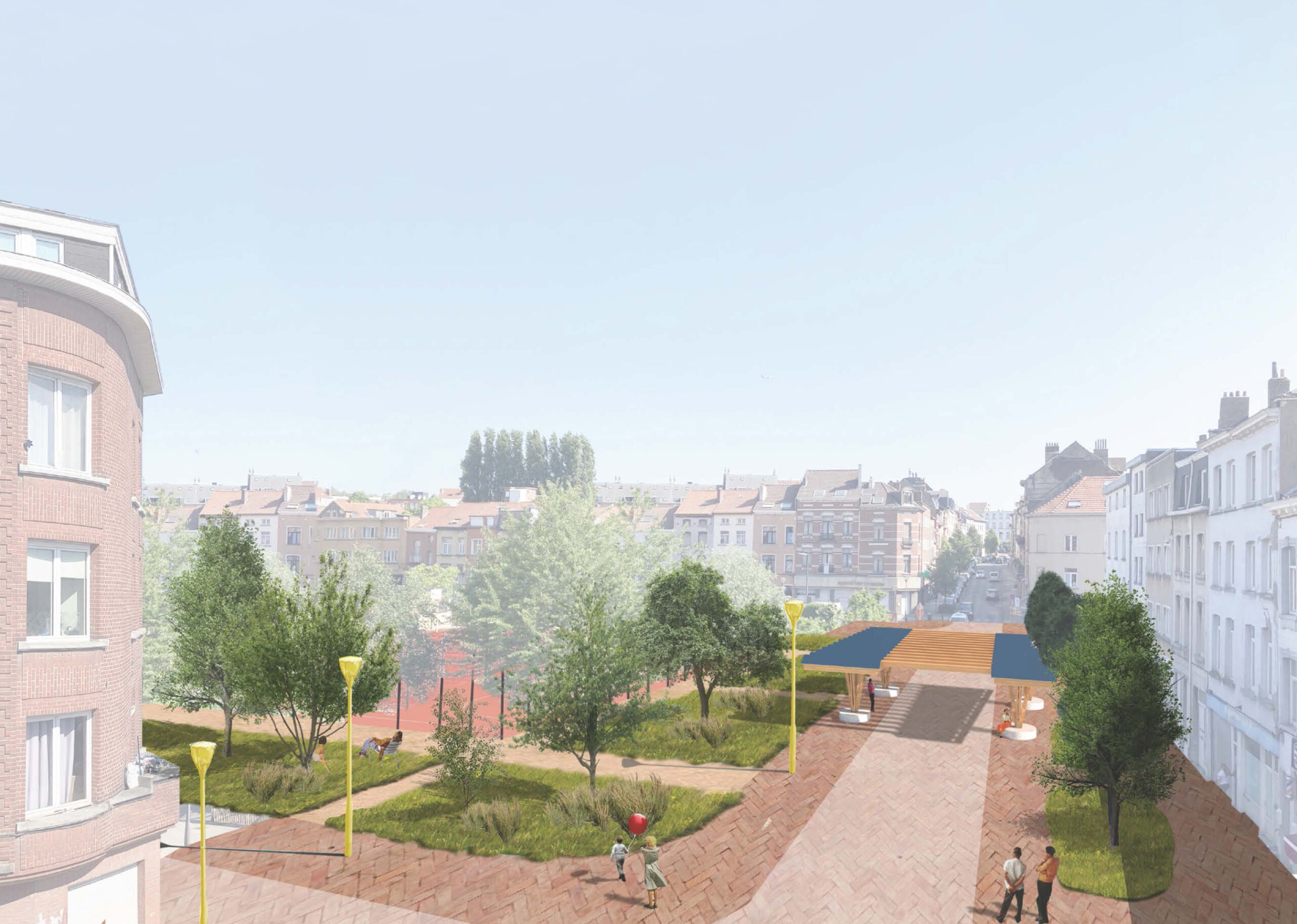 The project also foregrounds gender equity and participatory governance. Public spaces are named after prominent women feminists of the 1970s Belgian movement, continuing the municipality’s strategy of “feminizing” the city, while workshops with residents co-define programming, seating, and circulation. Safety and inclusivity are reinforced through visual openness, shared traffic zones, controlled topography, and elimination of opaque boundaries. Overall, the Jacquet Quarter interventions create a coherent, socially inclusive, and environmentally resilient public realm, providing a series of connected, legible, and multifunctional spaces that empower community life and celebrate cultural memory.